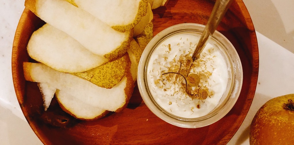 Enter dips. The easiest, most readily transportable offering. This simple ricotta dip funcions as both an appetizer or a light dessert. While there’s likely to be a crudité platter on the table, you’ll probably hold down the category for things-in-which-to-dip-fruit. And while it’s elegant enough for a special celebration, it’s quick enough to throw together for any movie night or casual potluck. I threw together the batch pictured here to ring in 2020 with some dear friends – I’m sure I’ll be toting some more out the door before the year is out.