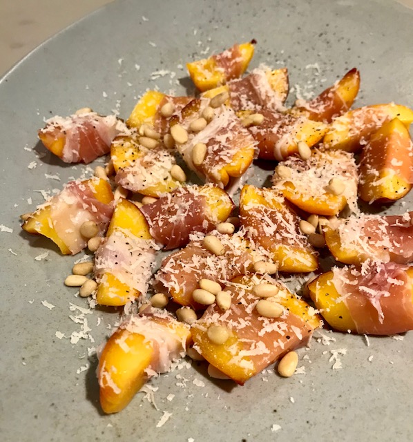 I didn’t do a lot of recipe creation this year. As of March, I was suddenly cooking for more than just myself, so I stuck to tried and true meals as well as new recipes from a range of sources. The major exception were quick snacks that came together without any cooking required, like this quick, yet a little fancy, peach and prosciutto plate. Simply take juicy, in-season peaches, wrap them in thinly sliced prosciutto, and garnish with toasted pine nuts and a generous amount of freshly grated parmesan. If you’re still looking for NYE nibbles, give this one a try.
